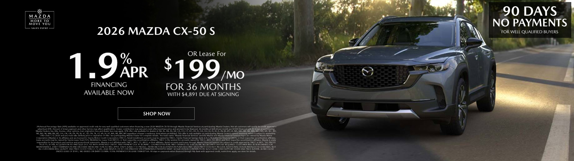 As a valued customer, we know your driving needs can change — and this is your moment to take advantage. Our Buy Back Program lets you get top value for your current vehicle while our More to Move You Sales Event gives you unbeatable pricing on select new Mazda models.